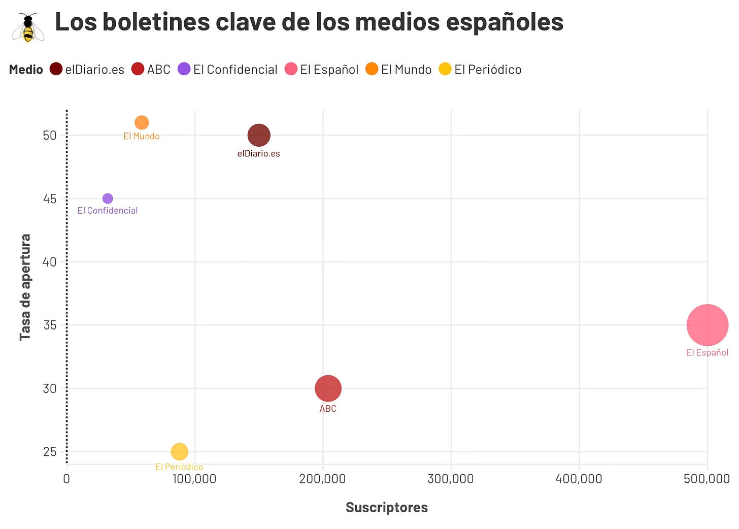 En el Confidencial, comparten Trinchera Cultural, la newsletter de Juan Soto Ivars, que tiene una audiencia de casi 17.000 usuarios y una apertura media del 65%, o Qué hemos aprendido esta semana, que se envía cada viernes a 56.000 usuarios.